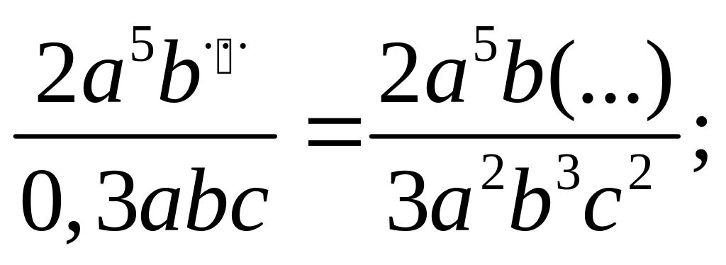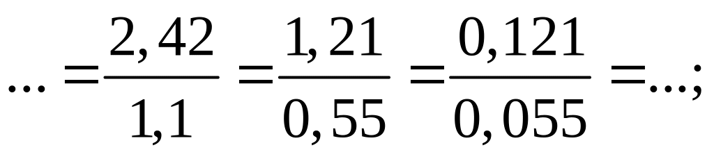 – Уравнять число знаков после запятой у всех десятичных дробей, входящих в алгебраическую дробь; отбросить в них запятую.