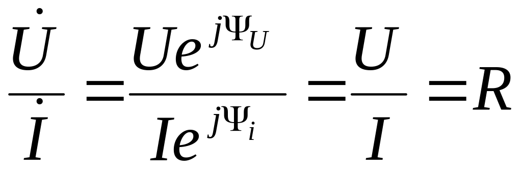 Полученный результат (закон Ома в комплексной форме) показывает, что отношение двух комплексов есть вещественная константа. Следовательно, соответствующие им векторы напряжения и тока (см. рис. 12 б) совпадают по направлению.