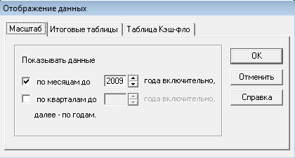 Далее следует настроить масштаб отображения данных в диалоговом окне Масштаб раздела Проект, а в окне Отображение данных необходимо установить флажок Показывать данные по месяцам до... года включительно и задать счетчику значение 2009 (рисунок 2).