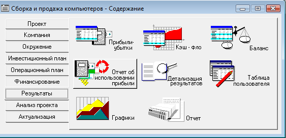 На вкладке Результаты формируют модули итоговых таблиц, в которых отражаются результаты расчета хозяйственной деятельности предприятия. Вспомним еще раз их назначение.