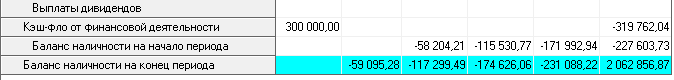 Рисунок 14 Отрицательные значения таблицы Кэш-фло