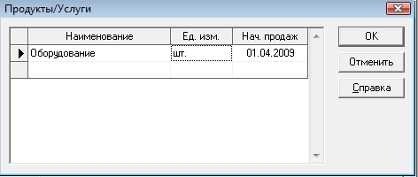 Следующим шагом будет оформление списка продуктов. В данном случае это список из одной строки. Здесь следует указать единицы измерения (шт.) и дату начала продаж, совпадающую с началом проекта (рисунок 4).