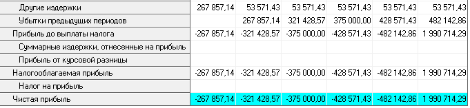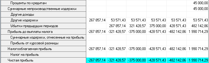 Создание бизнес – плана: Первоначально примем, что проект осуществляют в условиях отсутствующего налогообложения. Поскольку расчет и пересчет производится программой автоматически, впоследствии будет несложно ввести данные по налогам и сравнить, насколько изменяется инвестиционная привлекательность проекта.