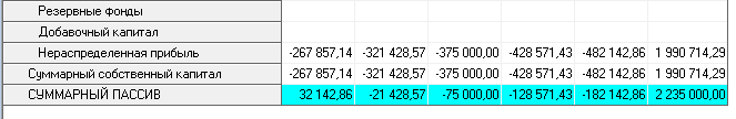 В таблице Баланс видно, что денежные средства появляются на шестой месяц проекта. До этого присутствуют только Краткосрочные предоплаченные расходы. По итогам шести месяцев предприятие формирует собственный капитал в размере 2669317,92 тенге (рисунок 23).