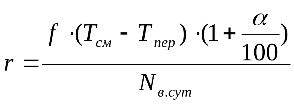 При проектировании поточной линии производят расчет ряда показателей ее работы. Исходным показателем является такт r поточной линии — интервал времени, через который периодически производится выпуск определенной продукции. В общем виде его величина определяется по формуле: