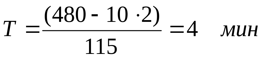 Пример. За смену (8 ч) на линии для отдыха рабочих предусмотрены два перерыва по 10 мин. План выпуска — 115 шт. Величина такта равна: