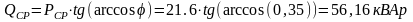 Средняя реактивная мощность для осветительной нагрузке рассчитывается по формуле:
