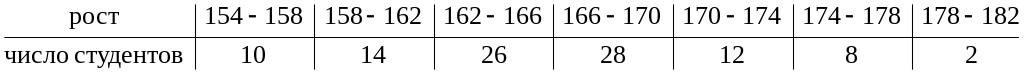 4. Ниже приведены результаты измерения роста (в см ) случайно отобранных 100 студентов:
