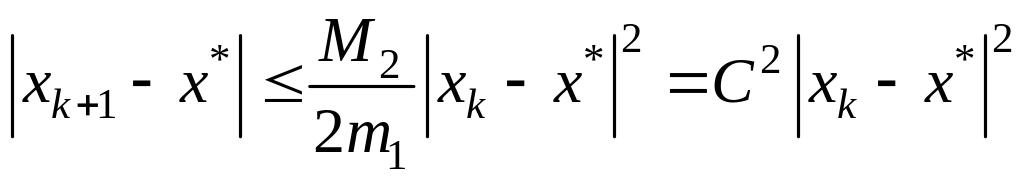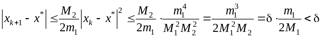 процедура Ньютона (1) сходится к точке со скоростью геометрической прогрессии, а в некоторой малой окрестности точки x* и с квадратичной скоростью.