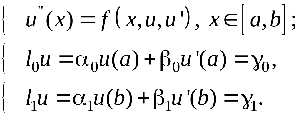 Рассмотрим вначале общую нелинейную постановку краевой задачи для ОДУ второго порядка: