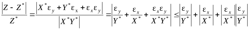 Если последнее слагаемое имеет второй порядок малости по сравнению с первыми двумя, то им можно пренебречь. В этом случае получаем более простое правило: при умножении относительные максимальные ошибки приближенно складываются.