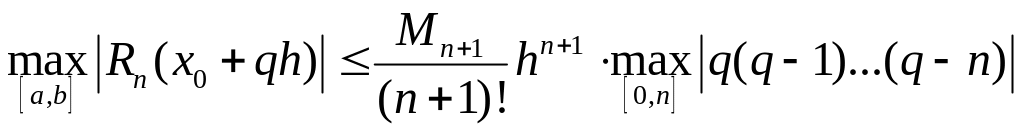Из формулы (19) следует оценка для максимальной абсолютной погрешности интерполяционной формулы Ньютона на всем отрезке