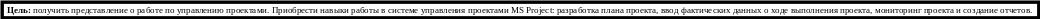 Цель: освоить общую терминологию планирования проектов и терминологию планирования проектов в MS Project; получить представление об основных принципах и этапах планирования; приобрести навыки определения проекта (задания ключевых характеристик) в MS Project.