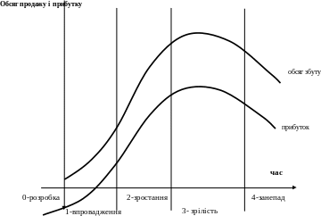 Концепція ЖЦТ зв'язує об'єми збуту товару, прибули, маркетингові стратегії з особливостями кожного окремого етапу ринкового життя товару.