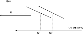 Рис. 5.3. Зрушення кривої попиту під впливом методів нецінової конкуренції
