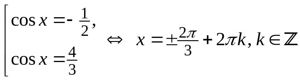 (Отбор корней может быть произведен и обязательно показан любым способом: на единичной окружности, перебором значений k и т.д.)