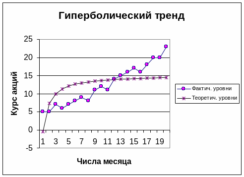 a=-15.667, b=15.218, т.е. гиперболический тренд записывается в следующей форме: