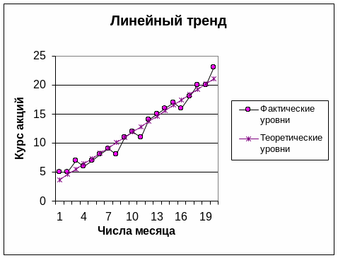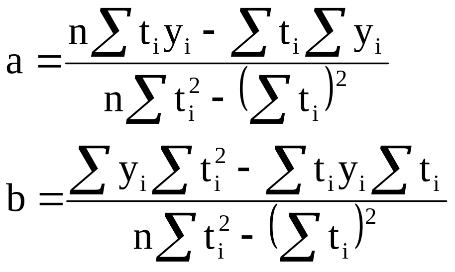ti – моменты времени (числа месяца), yi – уровни динамического рядя (курс акций, тыс.руб.).