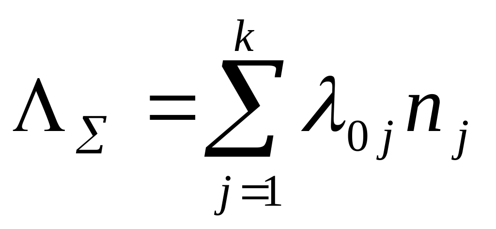 где 0j – среднегрупповое значение интенсивности отказов элементов j–й группы, найденное с использованием справочников, j=1, k;