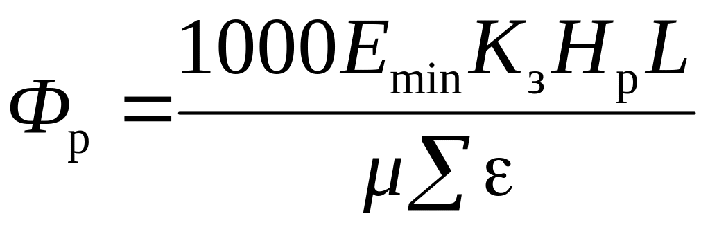 в) потребный световой поток ламп в ряду рассчитывают по следующей формуле: