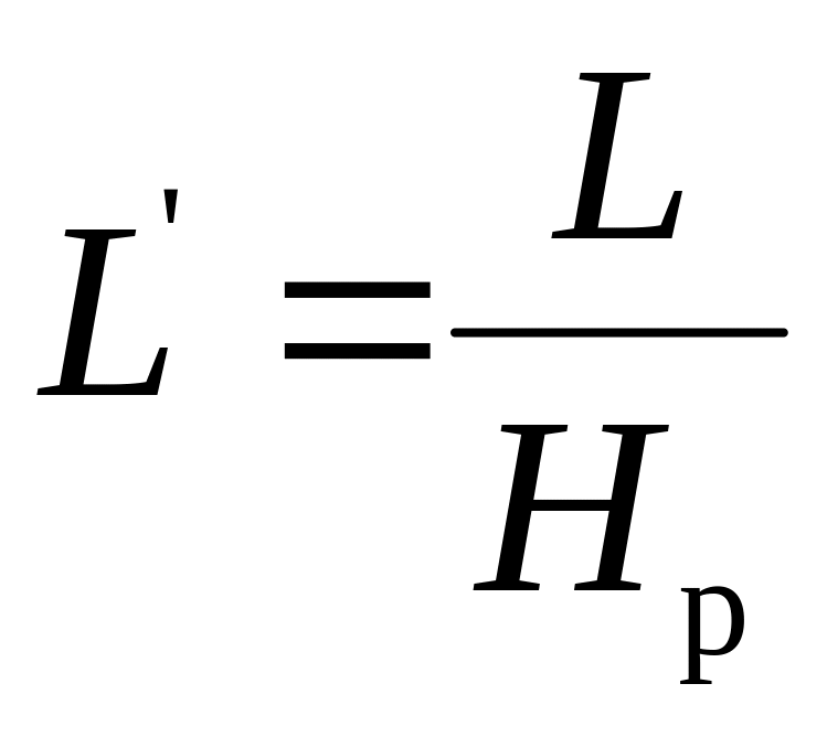 Рис. 2.8 Светящая линия (L) с указанием размеров, определяющих положение ее по отношению к контрольной точке; Нр – расчетная высота подвеса светильников; р – расстояние от контрольной точки в плоскости перпендикулярной светящей линии до перпендикуляра, опущенного на расчетную плоскость от светящей линии
