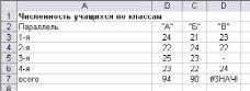 Формула пытается провести операцию, используя некорректные данные (например, пытается сложить число и текстовое значение). Если на листе в ячейке B7 (см. фрагмент листа ниже) была записана формула =B3+B4+B5+B6, которая затем была распространена (скопирована) на ячейки C7 и D7, то для приведенных исходных данных в ячейке будет выведен результат #Знач! (ясно, что складывать числа и текст нельзя).