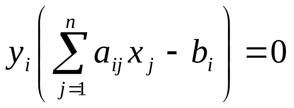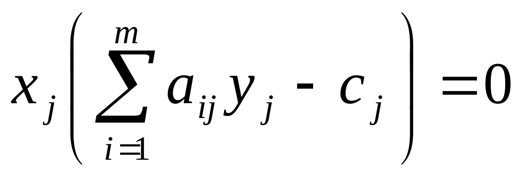 Пусть X=(x1, x2,…, xn)- допустимое решение прямой задачи, а У=(у1 у2…, уm)- допустимое значение двойственной задачи. Для того, чтобы они были оптимальными решениями соответственно прямой и двойственной задач, необходимо и достаточно, чтобы выполнялись следующие соотношения: