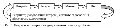Спонукання економічних суб’єктів до певних дій породжує конкретний результат у вигляді задоволення, часткові задоволення або незадоволення потреби, утворюючі таким чином логічний ланцюжок активної діяльності рис.5