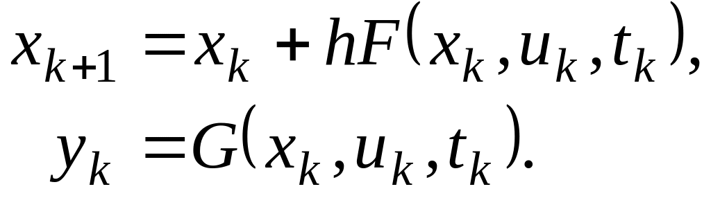 Если непрерывная система нелинейная, то для перехода к ее дискретному описанию также можно использовать методы численного интегрирования. Например, метод Эйлера дает для системы (4.16) дискретное описание: