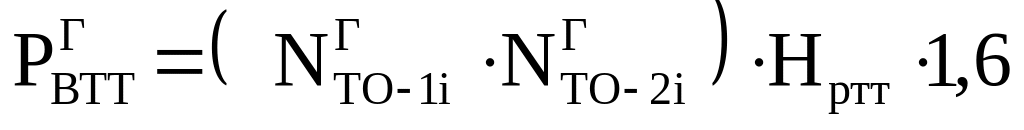 1,6 – коэффициент, учитывающий расход воды при туалетной мойке автомобилей, направляемых в ТР.