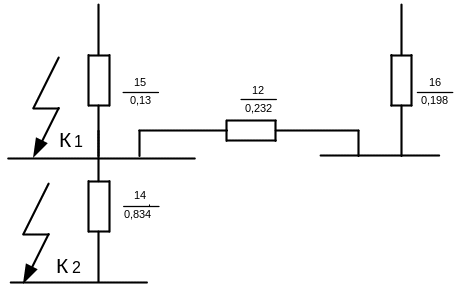 Розрахунок відносних опорів до точок K1, та K2 виконуємо в табличній формі, таблиця 1.7.