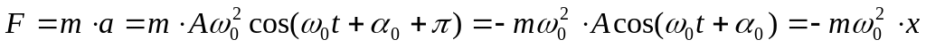 Массасы материялық нүкте тепе-теңдіктен х шамаға ауытқығанда, оған шамасына пропорционал, ауытқу бағытына кері бағытталған Ғ күш әсер етеді: