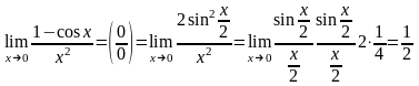 Екі функцияның қатынасының шегі шектердің қатынасына тең болады (әрине, егер бөлімдегі функция нолден өзгеше болса), яғни = .