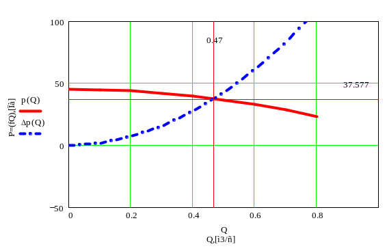 Результаты расчета характеристик давления венти-ляционного тракта и вентилятора показаны на рис. 10.