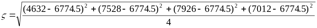 Степень колебания продаж за 2012-2013 гг. по отдельным кварталам определим на основе расчета среднего квадратического отклонения: