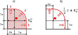 Площадь пожара имеет сложную форму развития, которую можно разложить на четыре элементарные геометрические фигуры (рис. 1.1.3).