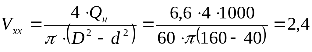 2. Определяем рабочую скорость Vраб и скорость холостого хода штока гидроцилиндраVхх: