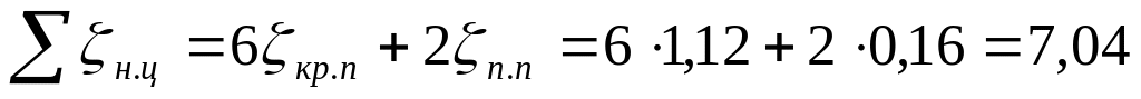 Для линий соединяющих насос и гидроцилидр, суммарный коэффициент потерь: