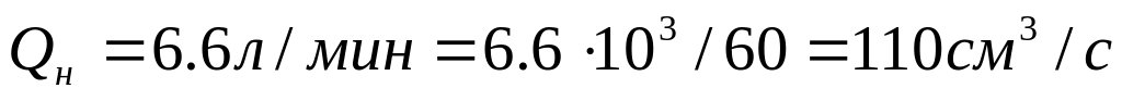 Итак насос должен обеспечивает подачу Qн = 6,6 л/мин, при pнас = 1,93 МПа.