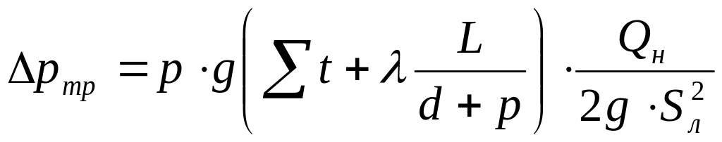 Потери в трубопроводе (общая формула):