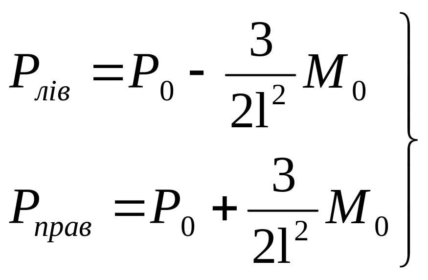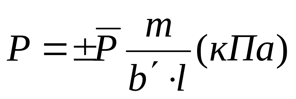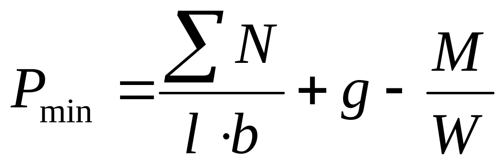 Значення крайніх ординат трапецевидної епюри тиску під підошвою стрічки в повздовжньому напрямку записуються формулою: