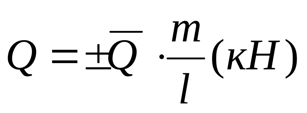 Якщо навантаження на стрічковий фундамент комплексне: діють g, P, m, то даний стрічковий фундамент розраховують окремо на кожний вид навантаження, а потім ординати епюр під заданими перерізами підсумовують з урахуванням впливу окремих видів навантаження в даному перерізі стрічкового фундаменту (балки). Для рівномірно-розподільного навантаження – g (кПа), (Па) використовують табл.№8 (стор.94) 1984 р. видання і отримують значення P, Q, M за формулами:
