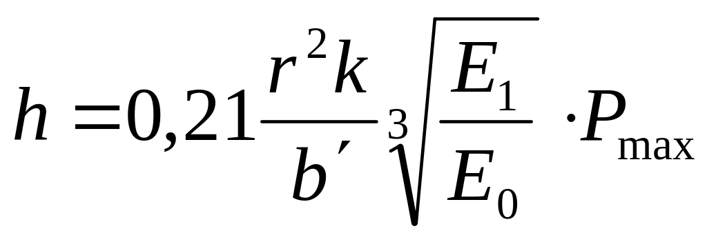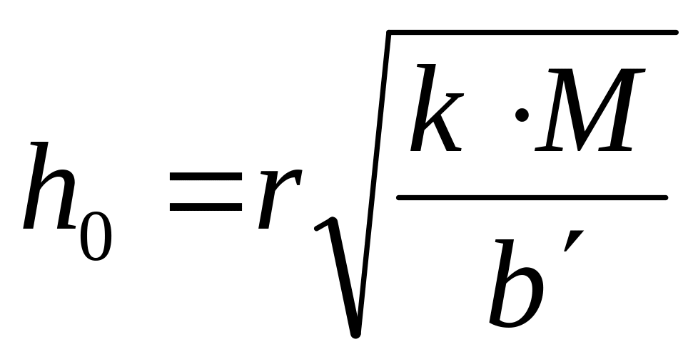 Якщо прийняти h0=h, що допустимо при великій товщині фундаменту, із наведених вище формул для М і h0 знаходять необхідну висоту «h»: