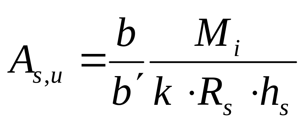 За визначеними зусиллями М розраховується необхідна площа поперечного перерізу арматури в повздовжньому напрямку за формулою: