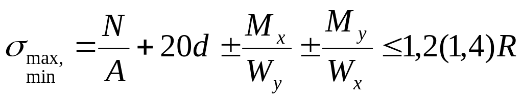 Wх, Wу – моменти опору підошви фундаменту по вісям «х» та «у».