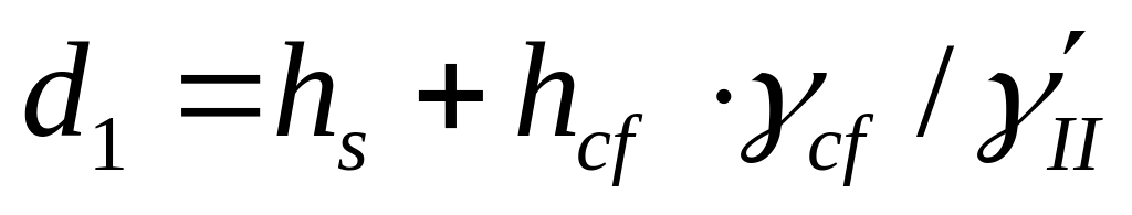 γ`II – осереднене розрахункове значення питомої ваги ґрунтів, що залягають вище підошви фундаменту.