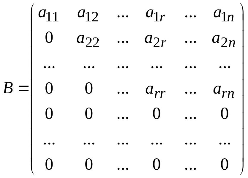Любую ненулевую матрицу с помощью элементарных преобразований строк или столбцов можно привести к эквивалентной ей ступенчатой матрице .