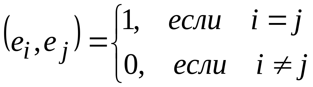 Базис евклидова пространства (dim Е=n) называется ортонормированным, если его векторы попарно ортогональны и длина каждого из них равна единице, то есть