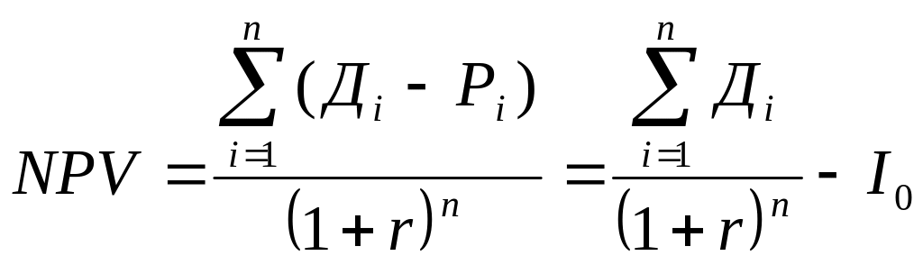 NVP = - IC+сумма(CF/(1+r)^n),где IC-вложение инвес-ий, «-» - расход;CF-денеж.поток(годовой).