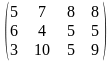 Значения а1, а2, а3, в1, в2, в3, в4, а матрицы находятся по таблице.